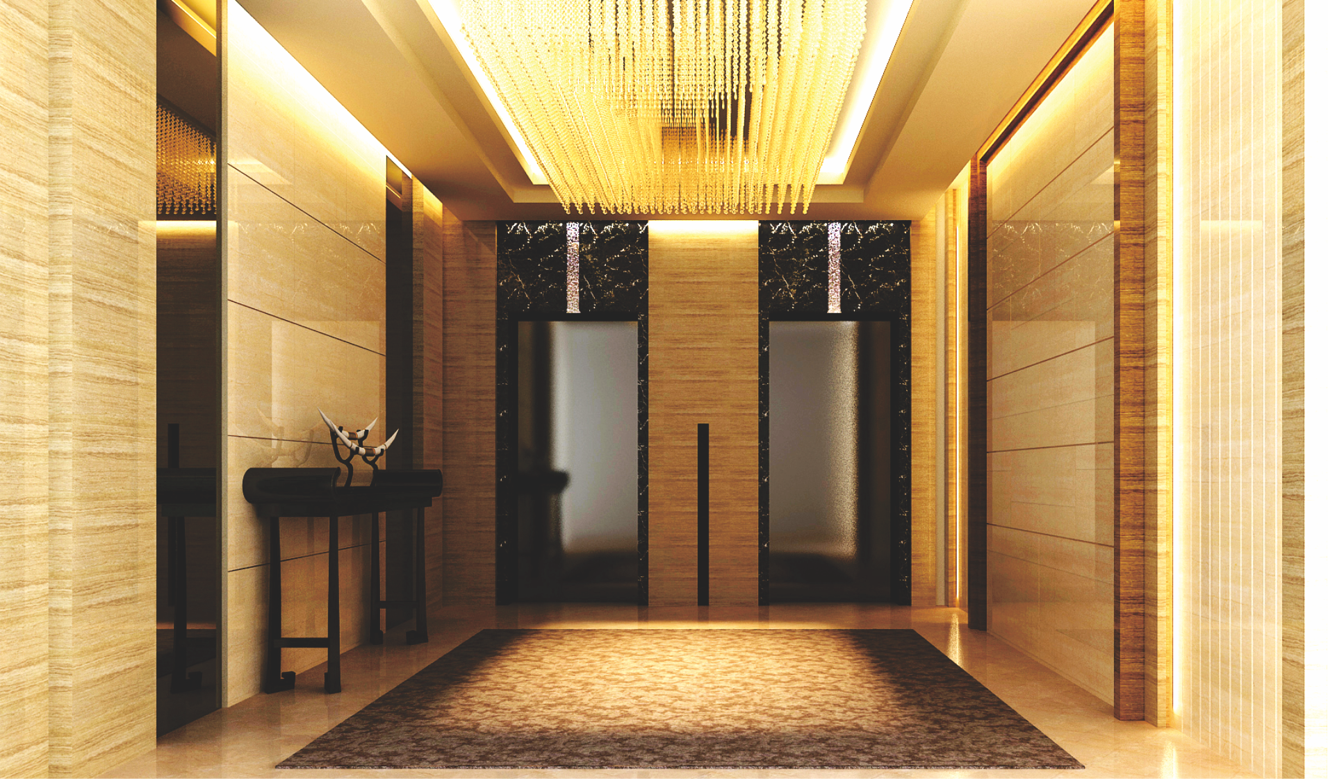 轿顶:多层反光板辅以四周腰形透光和有机灯柱