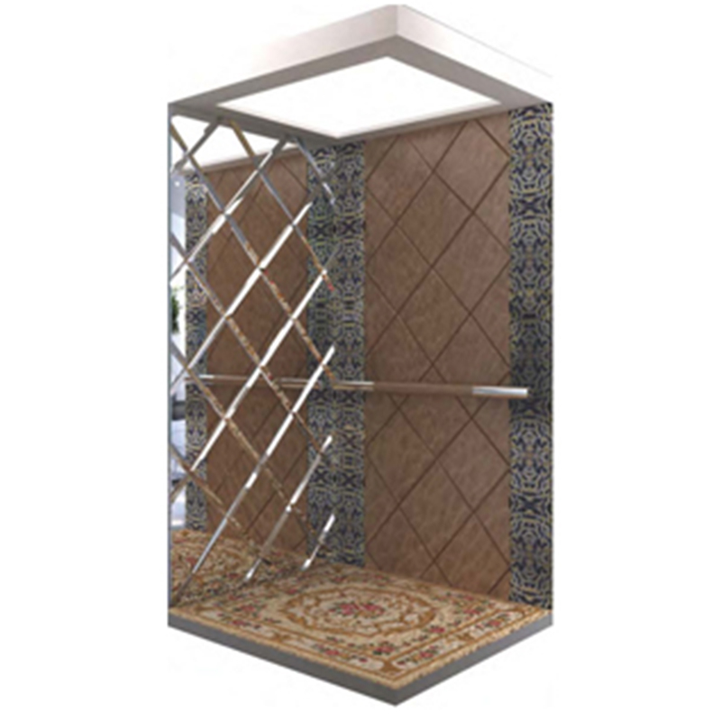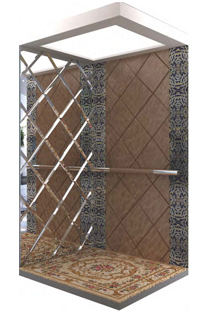 型 号:APSY-B03 主 机:曳引式 载 重:320KG/400KG/450KG 轿厢壁:两侧高级硬包皮革与四边夹丝玻璃组合,后侧工艺明镜 吊 顶:YMD-007 扶 手:高级皮纹+镜面不锈钢 地 板:PVC(业主可另购地毯自行搭配)