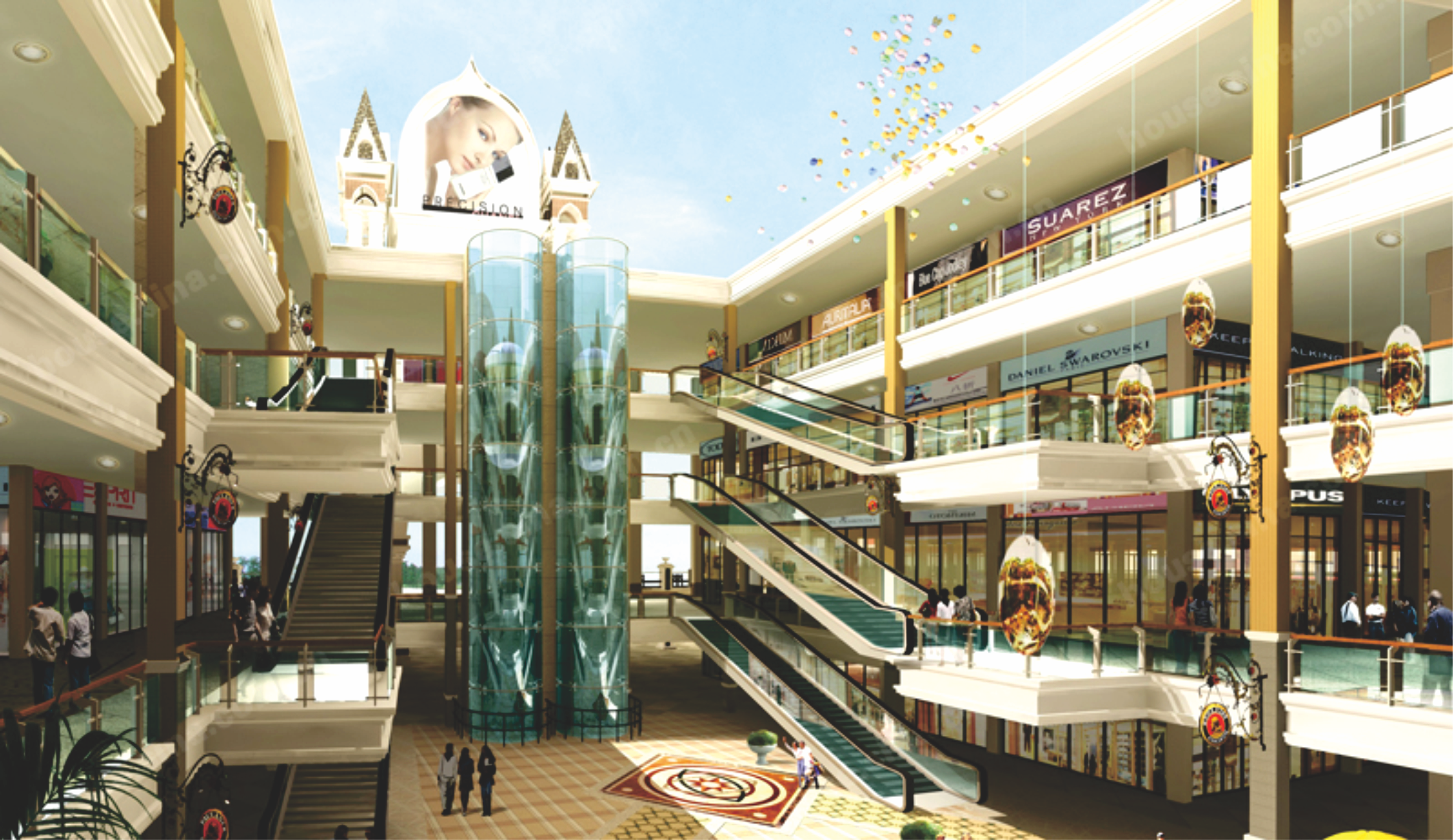 装饰顶:白色顶灯加筒灯